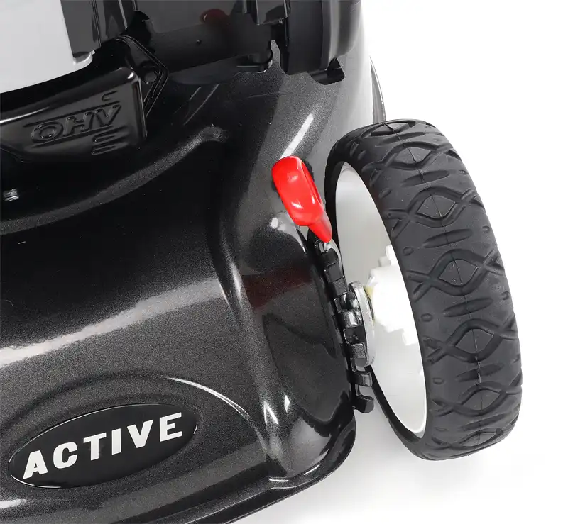 SekačkaActive 4850 SB má silný motor s rozvodem OHV o zdvihovém objemu 140 ccm. Nastavení výšky sečení je řešeno výškovým nastavením náprav. Přední a zadní náprava každá samostatně.