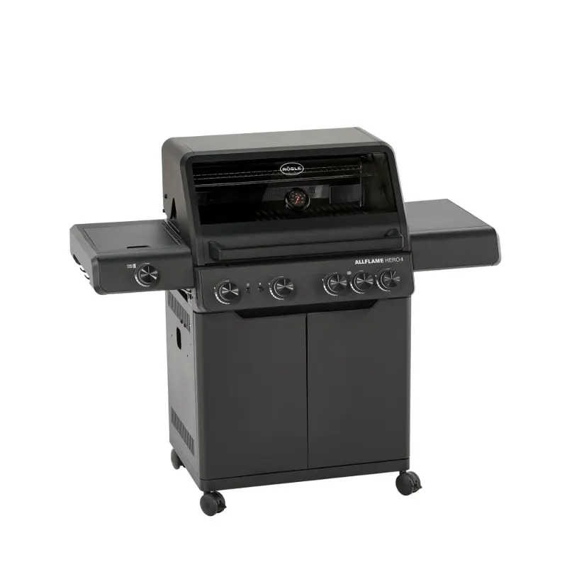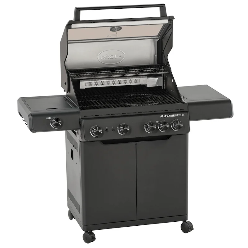 Plynový gril Rösle se skleněným víkem a se 4 hořáky HEATSPIRE z nerezové oceli (každý 3,5 kW) a Prime zónou a integrovaným zadním hořákem. Inovované hořáky HEATSPIRE nabízejí vyšší účinnost a nižší spotřebu plynu. Obsluha je pohodlná díky komfortní pracovní výšce, bočním úložným plochám a prostorné spodní skříňce se spoustou místa pro příslušenství.