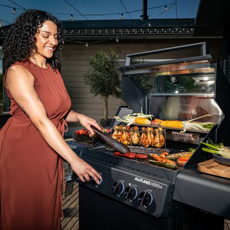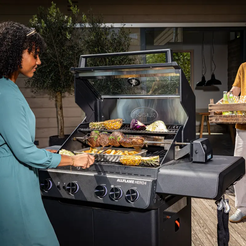 K plynovým grilům AllFlame Hero 4 nyní získáte Rotisserii AllFlame ZDARMA. Masivní šestihranný rožeň z nerezové oceli s elektromotorem a se čtyřmi robustními držáky zvládne najednou rožnit až 10 kg masa. Celé info o Rotisserii najdete ZDE.