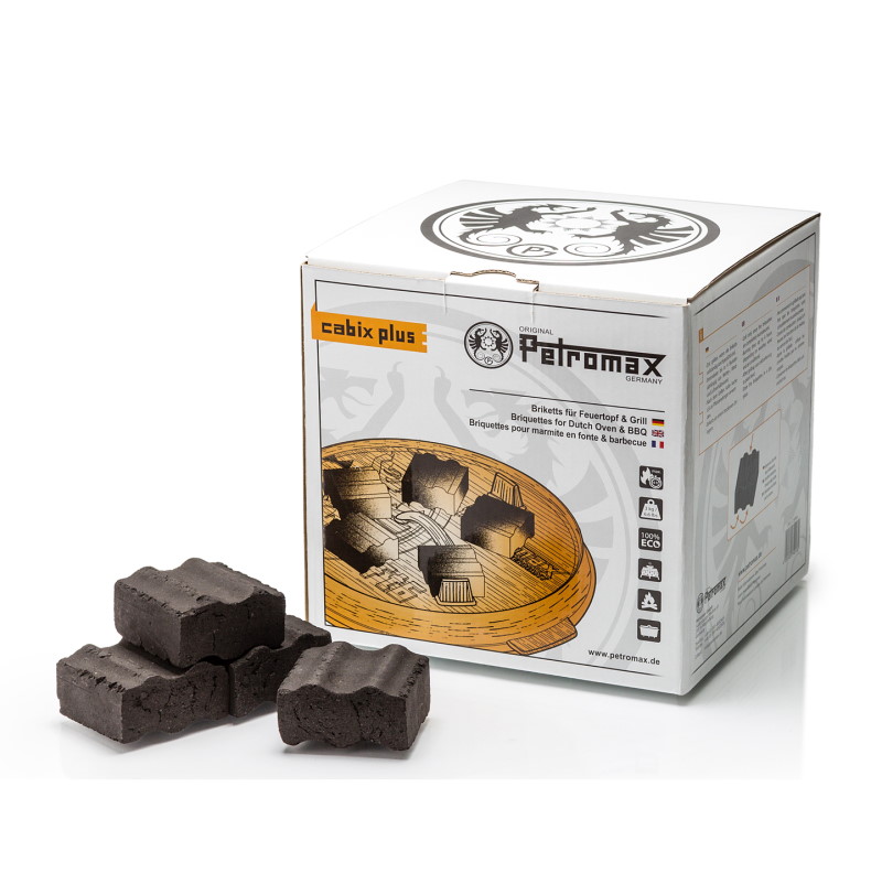 Brikety Cabix Plus byly speciálně vyvinuty pro použití v kombinaci s litinovým a kovaným železným nádobím. Díky velké styčné ploše přenáší na nádobí více tepla než klasické brikety. Drážkovaný profil zajišťuje vynikající provzdušnění pod i na litinových kotlících „Duch Oven“.