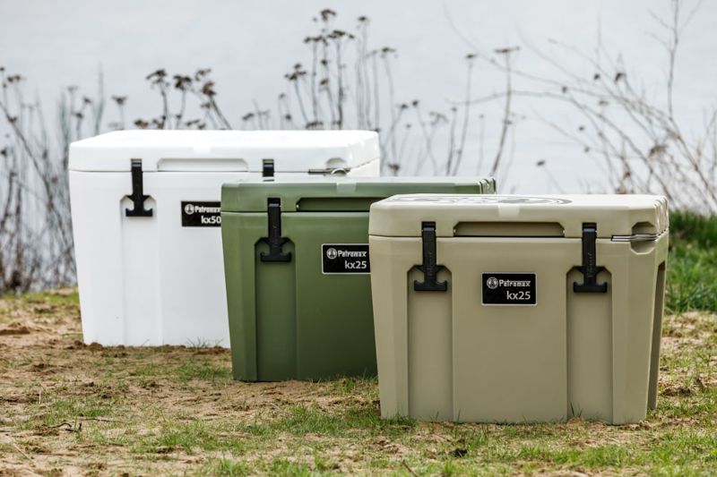 Robustní chladicí boxy od společnosti Petromax jsou navrženy jako nezávislé ultra pasivní chladicí systémy určené zejména pro venkovní použití. Dvouplášťové tělo z polyethylenu a silná polyuretanová izolace zajistí chlazení ledem až po dobu 12 dní – bez elektřiny nebo generátoru. Chladicí boxy jsou provozovány výhradně s běžně dostupnými kostkami ledu, chladicími vložkami nebo suchým ledem (dodržujte návod výrobce). Vodu z rozpuštěného ledu lze kdykoli vypustit pomocí integrovaného odtokového systému. Díky extrémně odolné konstrukci je možné je použít také jako stabilní sedadlo nebo stojan. Vedení na popruhy umožňují bezpečné připoutání k úložné ploše nebo ke člunu a protiskluzové gumové nožky a uzávěry nabízí praktické využití. Díky zesíleným uzamykacím destičkám v pravém horním rohu boxu lze boxy zajistit visacím zámkem.