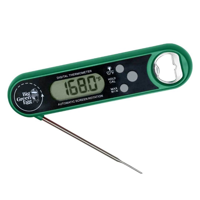 Sondu teploměru z nerezové oceli zastrčte do masa, ryby nebo drůbeže a za několik sekund už vidíte na velkém LED displeji teplotu uvnitř masa. Teploměr má další užitečnou funkci jako otvírák lahví.