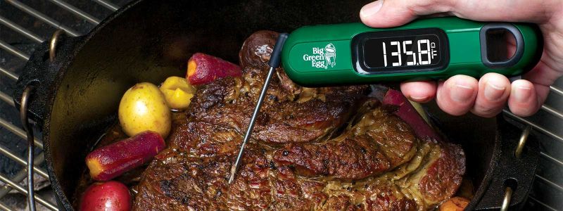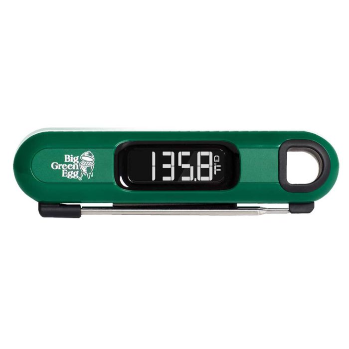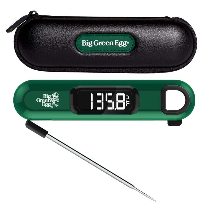 Teploměr Big Green Egg měří teplotu unvitř pokrmu ve °C i °F. Změří a ukáže teplotu (až do 232°C) během 3 až 4 sekund, takže se nemusíte bát, že vám z Big Green Egg uteče příliš tepla. Součástí je ochranné pouzdro.