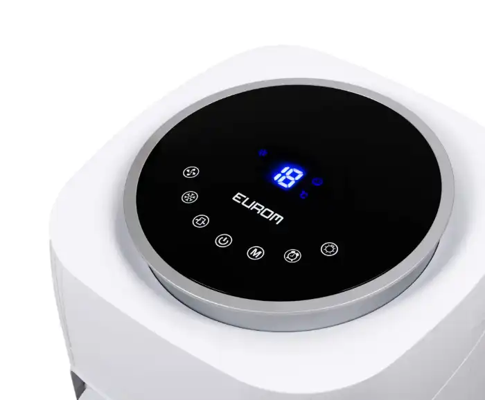 Eurom Coolstar 6.0 je mobilní chladič vzduchu s nádrží na vodu o objemu 6 litrů. Naplňte ji vodou a dokonce i kostkami ledu a chladič vzduchu může začít chladit. Coolstar 6.0 má dokonce přirozený efekt větru, díky kterému se budete cítit jako venku.
