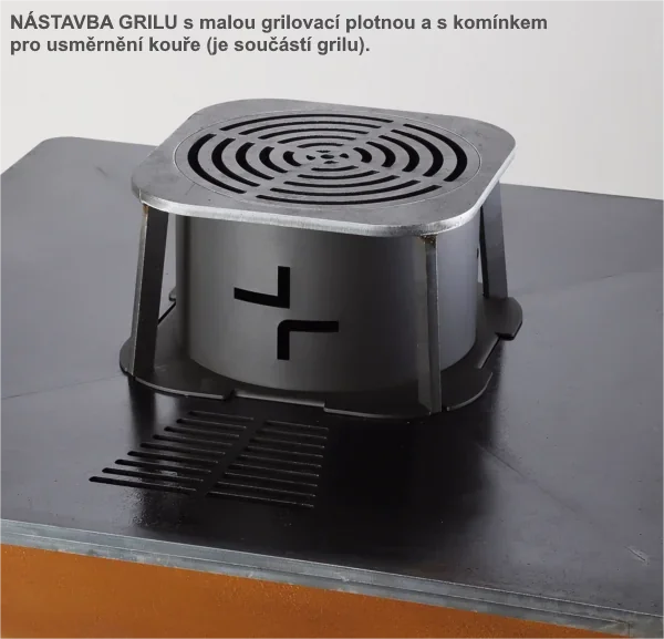 Nástavba grilu s malou grilovací plotnou pro umístění hrnce (součást grilu)