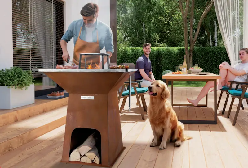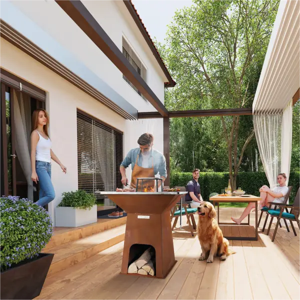 Materiál těla grilu: patinující Cortenová ocel (ocel s antikorozní vrstvou pro dlouhodobou životnost v celoročním provozu)