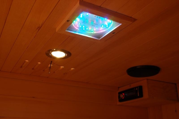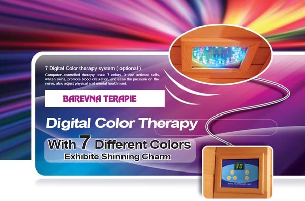 Infrasauna Carbon-BT je doplněna o barevnou terapii. Je to elektroniky řízená funkce a skládá se ze 7 základních barevných kompozic, při kterých lze efektivně aktivovat lidské smyslové buňky zklidňující kůži, podporující krevní oběh, nebo zmírňující tlak na nervovou soustavu. Například červená barva zrychluje krevní oběh, transformuje duševní depresi v optimismus. Modrá barva podporuje vstřebávání bílkovin a kolagenu, posiluje kožní buňky, sklidňuje nervy a uvolňuje tělo. Žlutá barva podporuje buňky s okysličovací schopností, aktivuje mikrocirkulaci, regeneraci kůže....Zelená barva blahodárně reguluje funkci buněčných žláz, pomáhá při akné....