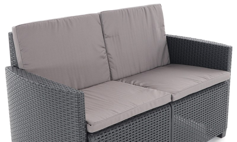 Pohodlná pohovka - lavice s polstrováním v imitaci umělého ratanu s UV filtrem určená do interiérů, exteriérů a pergolových prostor.