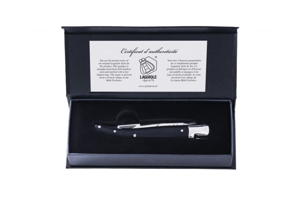Kapesní nůž Luxury s rukojetí z ebenového dřeva z kolekce Laguiole Style de Vie balený v dárkové krabičce. Nože Luxury jsou pevné a robustní, v jedinečném designu.