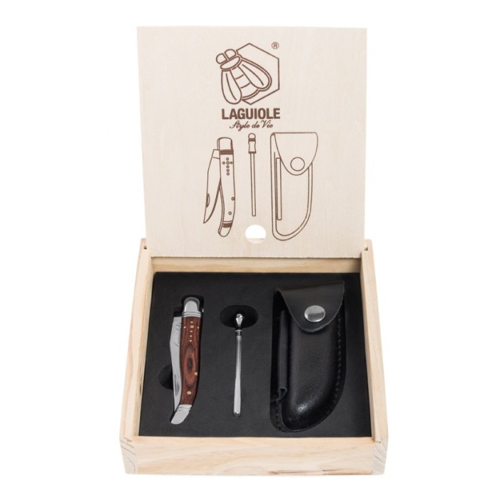 Kapesní nůž s pouzdrem a ocilkou Luxury s rukojetí ze dřeva palisandr z kolekce Laguiole Style de Vie balený v dárkovém boxu. Nože Luxury jsou pevné a robustní, v jedinečném designu.