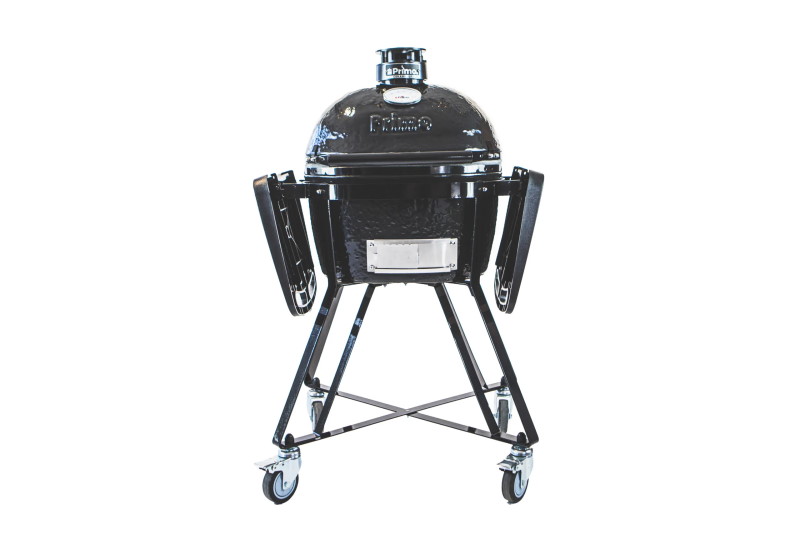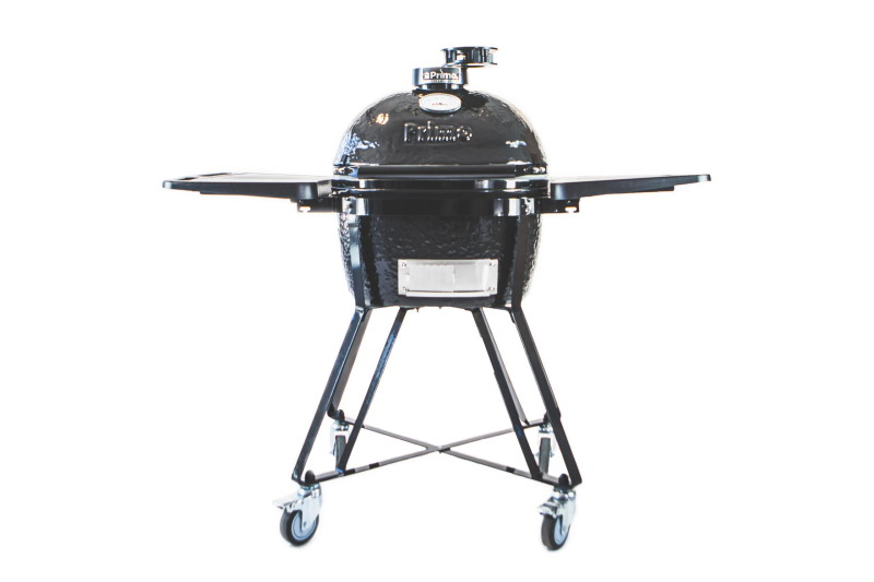 Samostatně stojící americký keramický kamado gril Junior Charcoal Primo s bočními stolky a robustním vozíkem. Poskytuje varnou plochu až pro 4 osoby. Patentovaný oválný tvar nabízí vynikající účinnost vaření a přístupnost. V grilu můžete grilovat, opékat, péct či udit.
