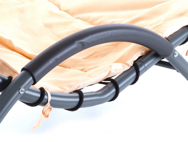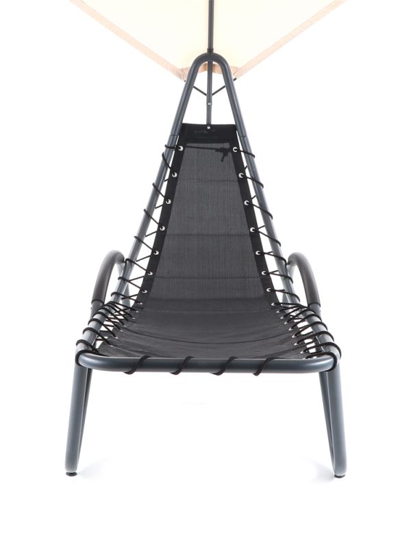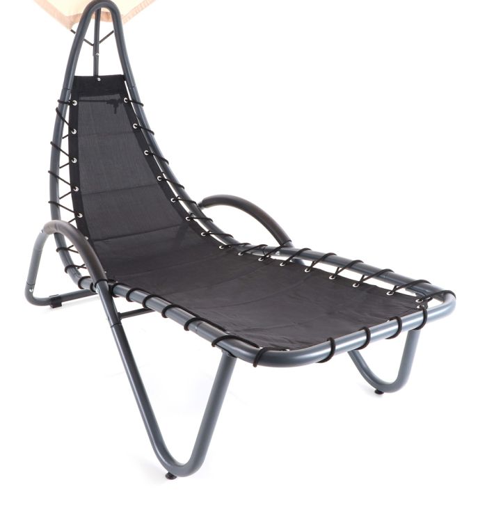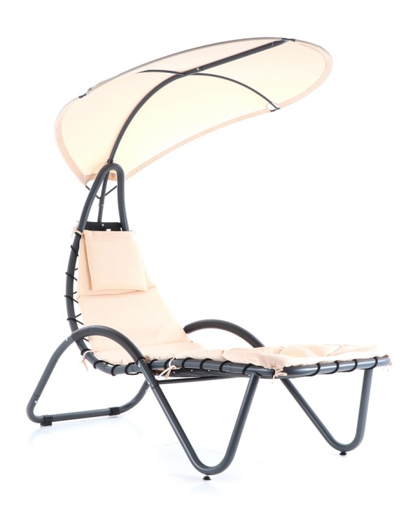 Pohodlné relaxační lehátko s velice praktickým hlavovým stínítkem proti přímému slunci.