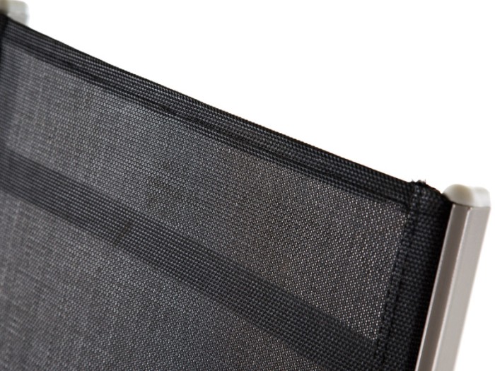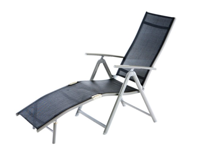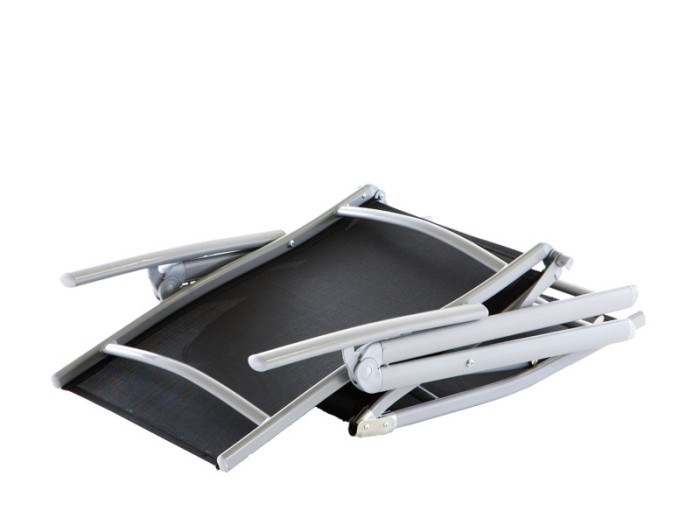 Polohovatelné skládací lehátko z hlinikových profilů.