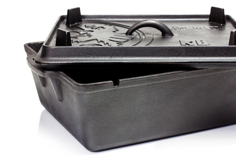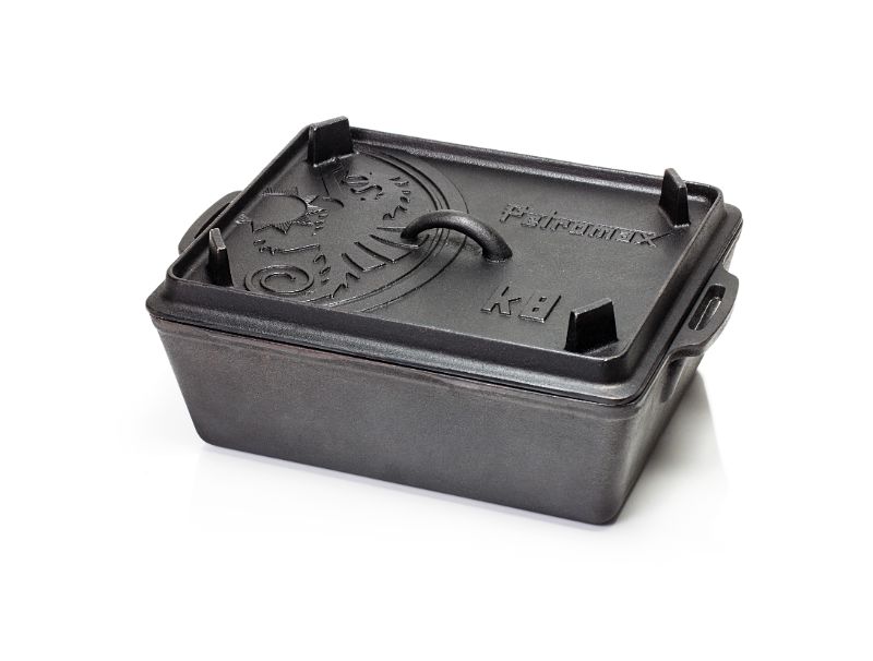 Pečící forma s víkem o objemu 4,6 litru. Využít ji můžete jako pekáč, zapékací mísu či formu na chleba. Na víko můžete položit rozžhavené uhlíky a využít pekáč jako holandskou troubu. Víko formy jednoduše sejmete pomocí zvedáku na poklice. Pečící forma má víko s nožkami. Po otočení tak můžete víko použít jako pánev. Díky drážkovanému profilu je ideální pro přípravu steaků a grilovaného masa.