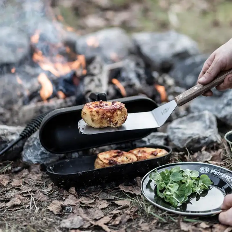 Litinový pekáč na brambory je v podstatě samostatná pečící trouba pro přípravu klasických brambor v rozžhaveném uhlí bez nutnosti použít alobal. Pekáč na brambory má na spodní straně celoplošnou lištu, která tvoří rovnou a stabilní platformu pro postavení do žhnoucího uhlí.