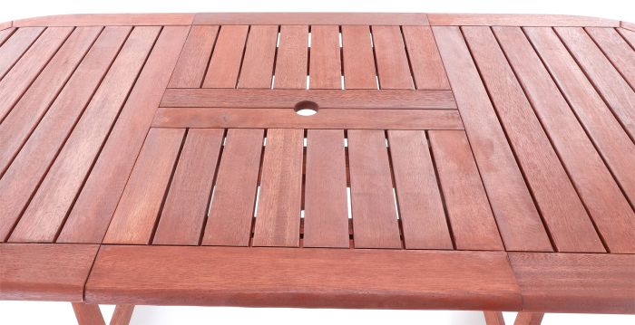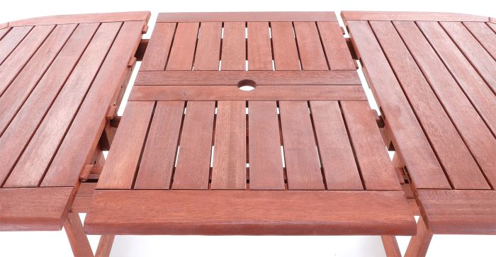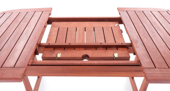 Zahradní rozkládací stůl z exotického, velice trvanlivého a tvrdého dřeva meranti.
