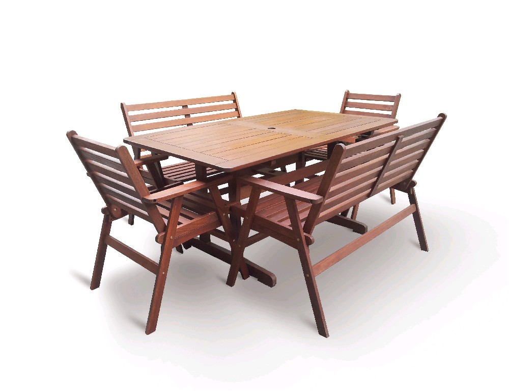 Tmavě červené meranti je nejžádanějším z tropických materiálů na výrobu zahradního nábytku pro svoji vynikající trvanlivost, dlouhou životnost, vysokou tvrdost a dobrou opracovatelnost. Dřevo meranti se ošetřuje teakovým olejem, který jej chrání před vysušením, vodou, škůdci nebo drobným poškozením. Vzhledem k tomu, že nábytek je vyroben z přírodního materiálu, je kresba dřeva a jeho zbarvení na každém kusu nábytku unikátní.
