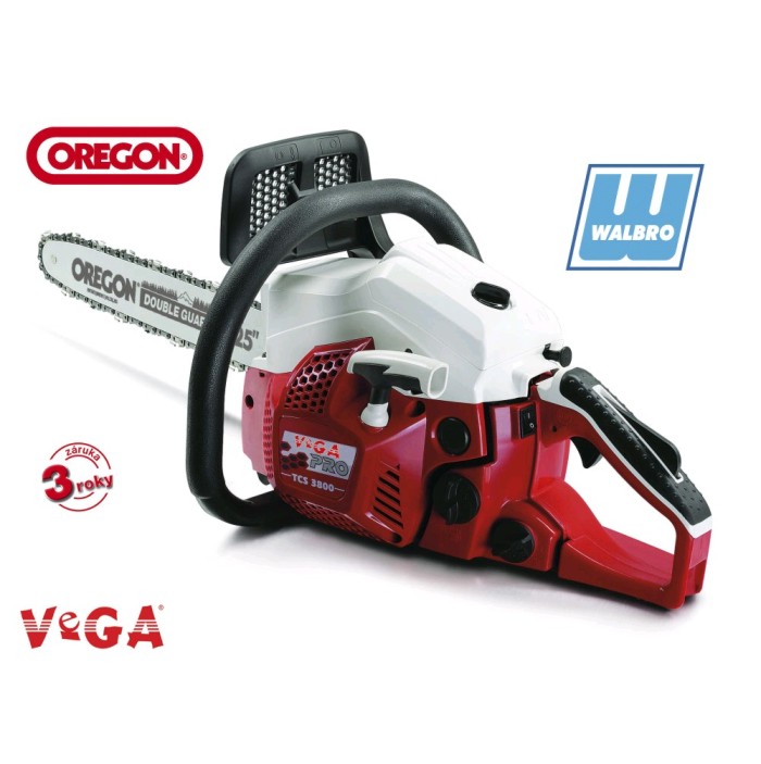 Motorové pily VeGA TCS Professional nabízí vysokou kvalitu všem náročným uživatelům, kteří očekávají profesionální řetězové pily na úrovni třídy farmer. Skříň motoru je vyrobena ze slitiny magnezia, což dává váhovou výhodu až 0,5 kg oproti konkurenci. Dále slitina magnezia lépe odvádí teplo, než hliníkové tělo, tudíž nehrozí „utavení“ stroje. Výborné vyvážení pil VeGA TCS Professional a účinný antivibrační systém společně s komponenty od těch nejlepších světových dodavatelů umocňují exelentní řadu řetězových pil. Řetězová lišta a řetěz jsou od americké společnosti OREGON, japonské karburátory Walbro a svíčky NGK.