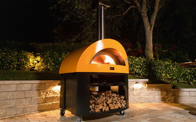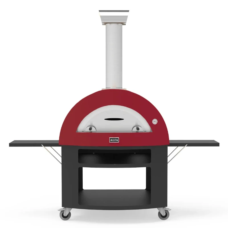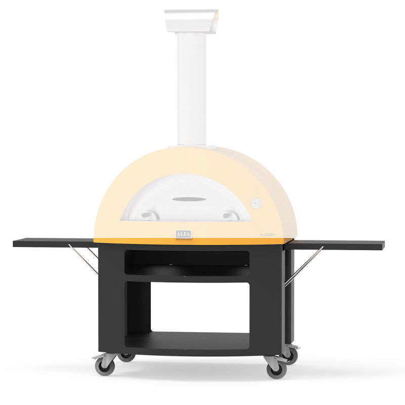Ocelová podstava pod domácí pec 5 Pizze je vybavena velkými skrytými bočními policemi, ohřívací policí a prostorem na dřevo.