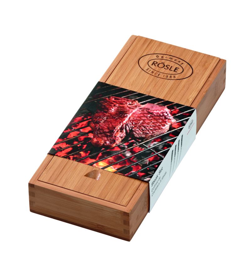 Sada 4 kusů steakových nožů v dřevěném boxu