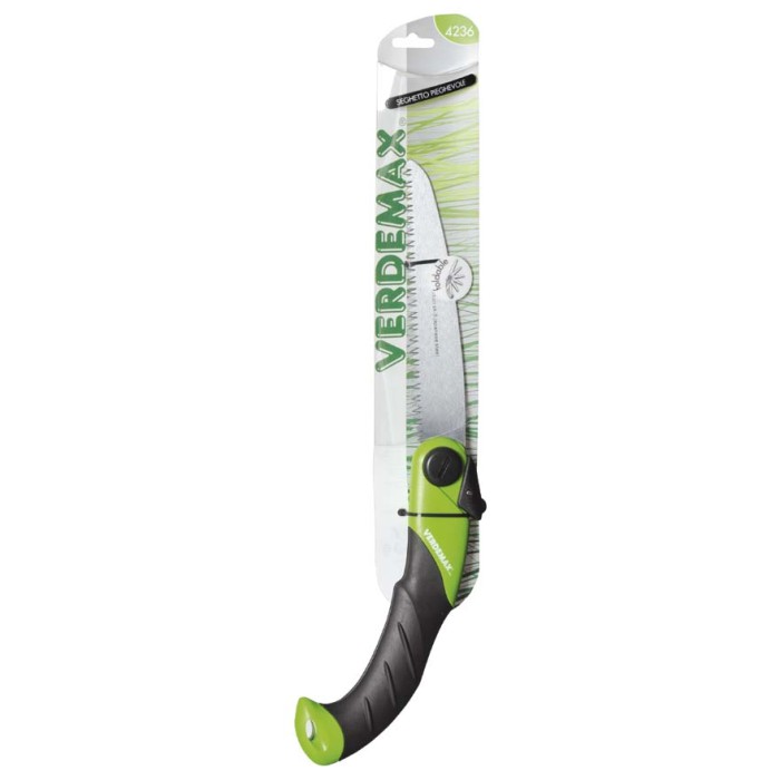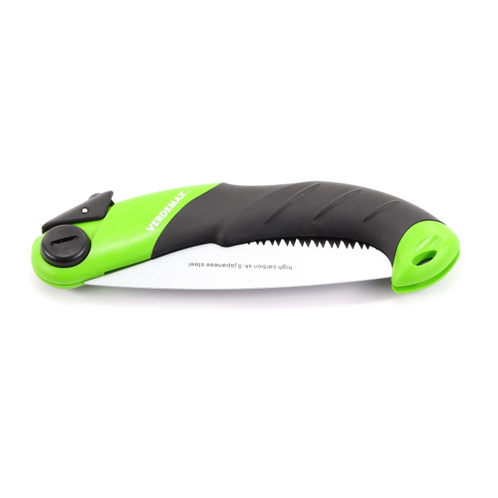 Ruční skládací pilka vyrobená z kvalitní oceli, což zvyšuje odolnost vůči korozi. Třístranně naostřené lichoběžníkové zuby umožňují velice rychlé a efektivní řezání dřevěných vláken. Speciální rukojeť z měkkého protiskluzového materiálu v ergonomickém provedení.