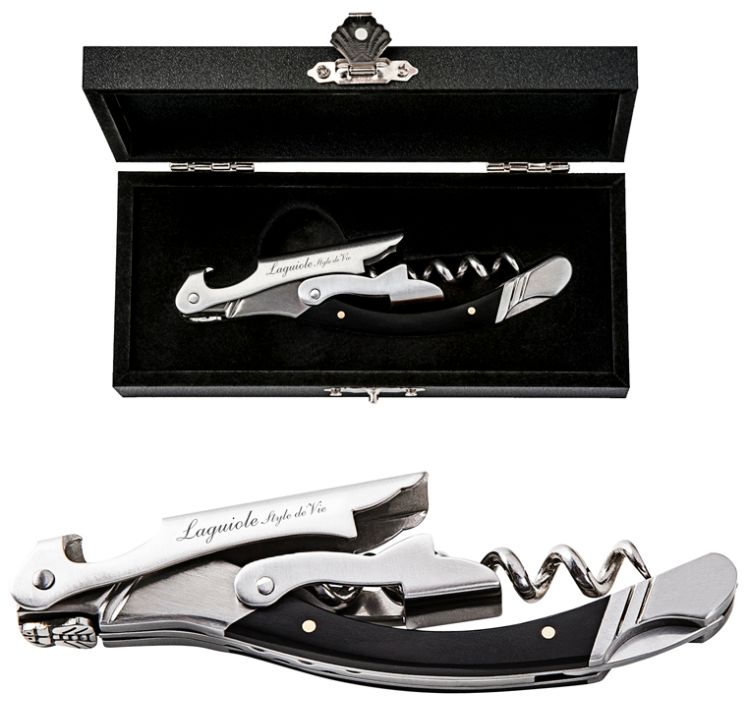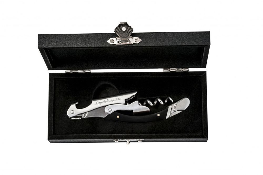 Vývrtka na víno balená v luxusním dřevěném boxu z kolekce Laguiole Style de Vie. Pomůcky kolekce Luxury do kuchyně a ke stolování jsou pevné, v jedinečném a stylovém vzhledu.