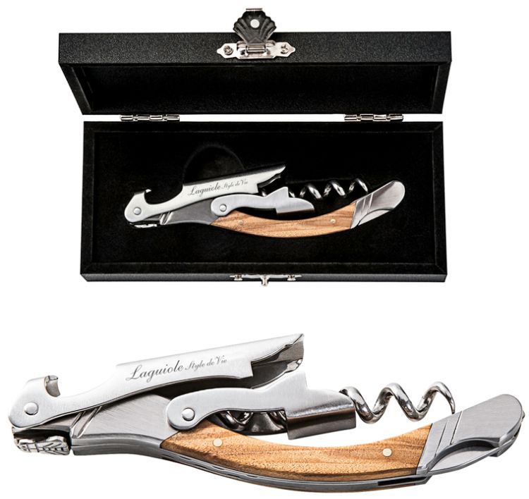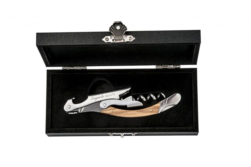 Vývrtka na víno balená v luxusním dřevěném boxu z kolekce Laguiole Style de Vie. Pomůcky kolekce Luxury do kuchyně a ke stolování jsou pevné, v jedinečném a stylovém vzhledu.