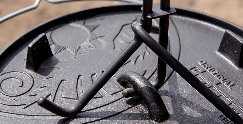 Zvedák na poklice je vhodný na otevírání a zavírání hrnců nebo pečících forem Petromax. Profesionální zvedák na poklice má upevňovací mechanismus pro bezpečné a pohodlné držení poklice.